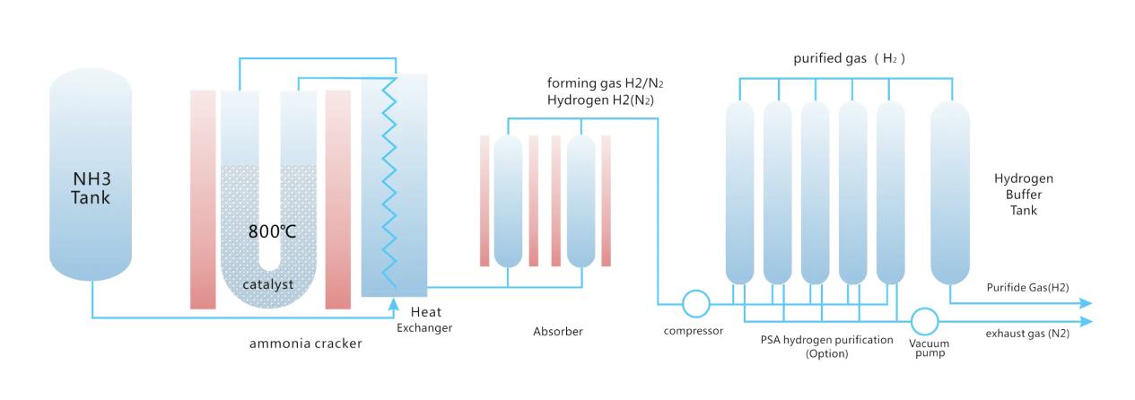 The process of hydrogen production from ammonia cracking involves the thermal decomposition of ammonia (NH3) into hydrogen and nitrogen. While the chemistry is straightforward, the industrial execution requires extreme precision. Ally Hydrogen Energy has mastered this through the development of highly efficient catalysts and heat recovery systems that minimize energy consumption.