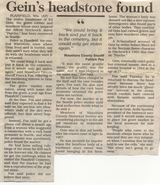 Source :Ed Gein Fan Club
